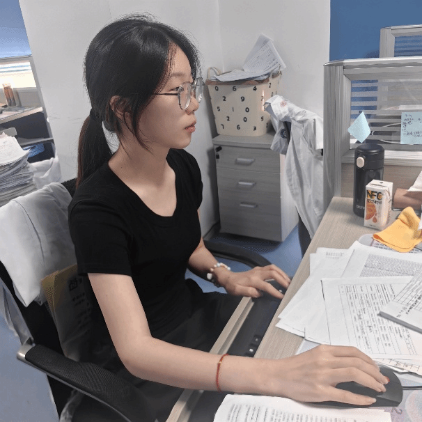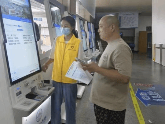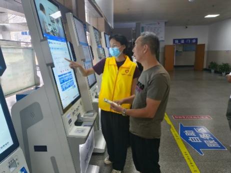 在实践服务中,她迅速融入了熟悉又繁忙的门诊环境,协助患者完成挂号、缴费等自助操作,高效地应对各种情况。并且还会解决患者可能遇到的实际困难,如:帮助不熟悉智能设备的老年患者操作手机;用易懂的语言解释医保报销流程;当自助机偶发故障时,她首先安抚焦急患者的情绪,再引导其前往人工窗口办理。胡淑阳同学深刻体会到,这份看似重复的工作,核心在于细心观察患者的需求与困难,并通过耐心沟通化解他们的困惑与焦虑。每当看到患者因问题得到解决而从眉头紧锁到舒展笑容,都让她真切感受到,即使是在平凡的岗位上,用心服务也能他人的就医之路增添一份温暖。